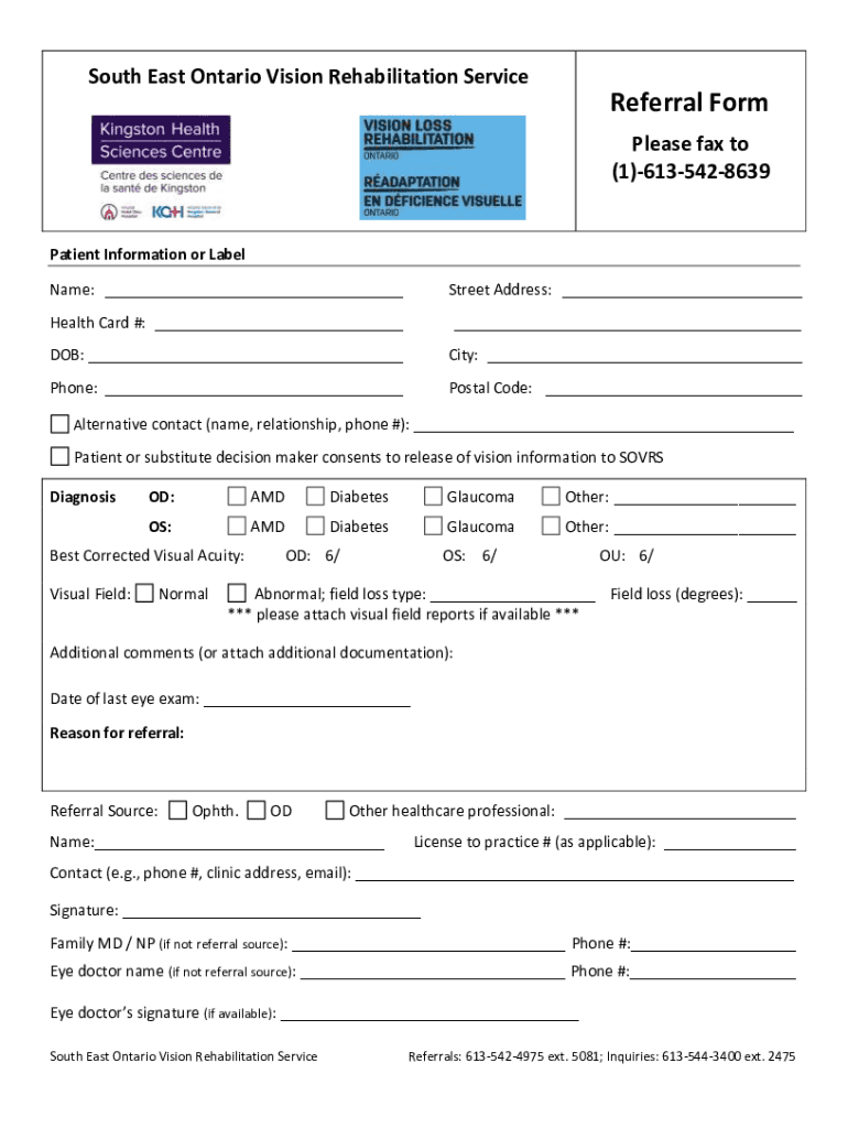 South East Ontario Vision Rehabilitation ServiceReferral Form