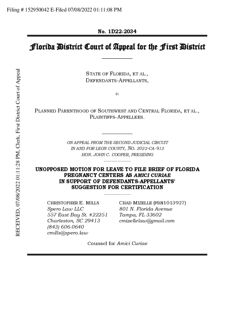 Filing # 152950042 Filed 07/08/2022 01:11:08 PMN. 1D222034Florida District Court of Appeal for the First District