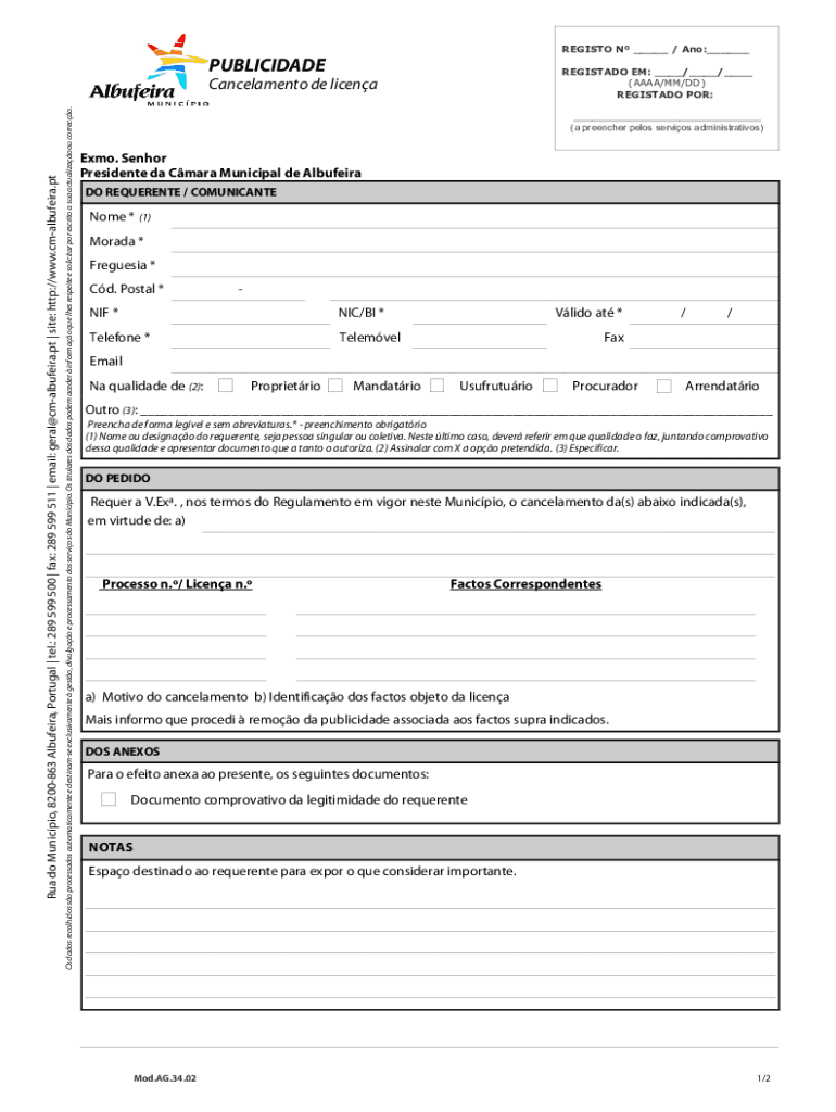 Obtenha o gratuito Pub - Cancelamento de licena - Cmara Municipal de Albufeira