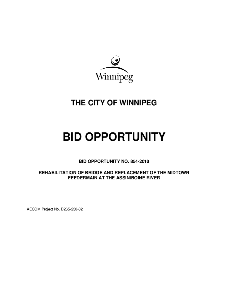 THE CITY OF WINNIPEG OPPORTUNITY BID OPPORTUNITY NO. 8542010 REHABILITATION OF BRIDGE AND REPLACEMENT OF THE MIDTOWN FEEDERMAIN AT THE ASSINIBOINE RIVERAECOM Project No. D26523002The City of Winnipeg