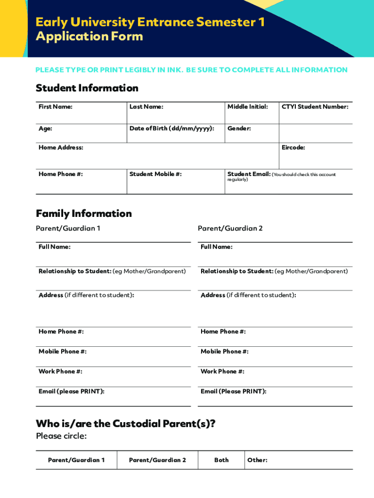 Get the free Early University Entrance Semester 1 Application Form