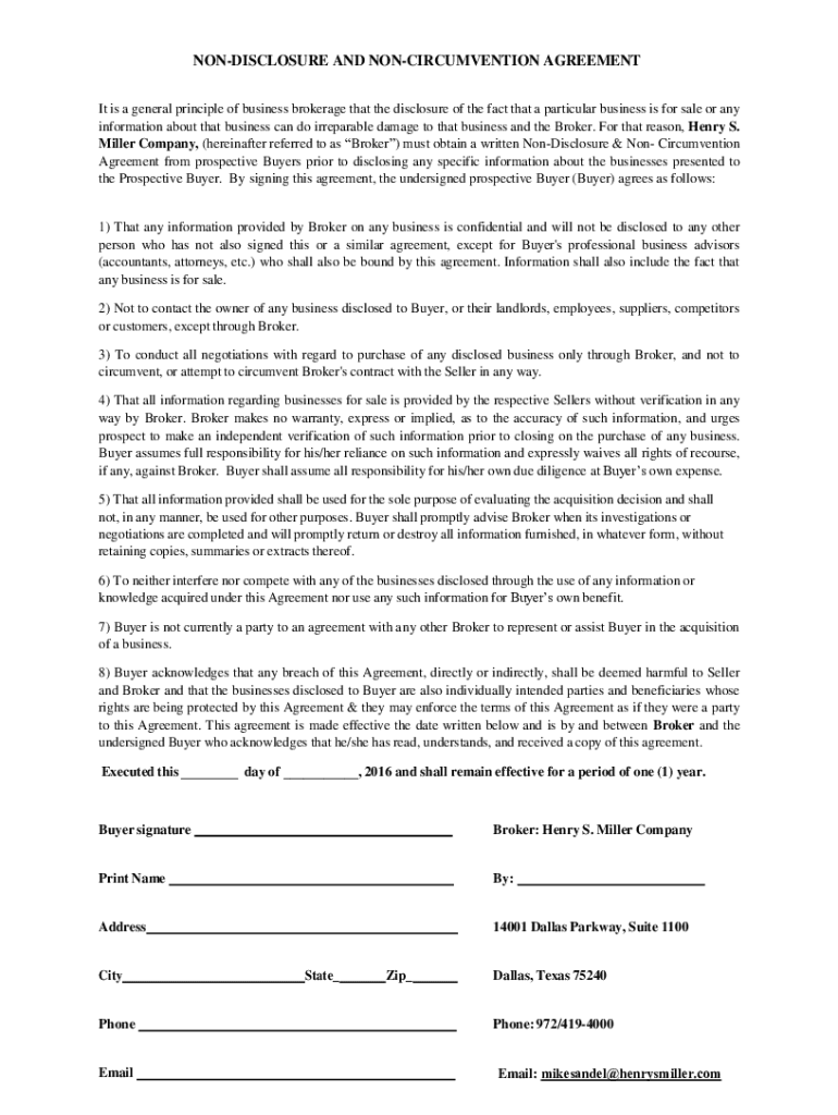 Get the free Non circumvention non disclosure agreement international ...
