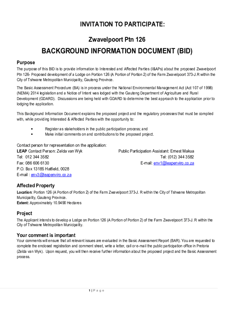 Get the free INVITATION TO PARTICIPATE: Zwavelpoort Ptn 126