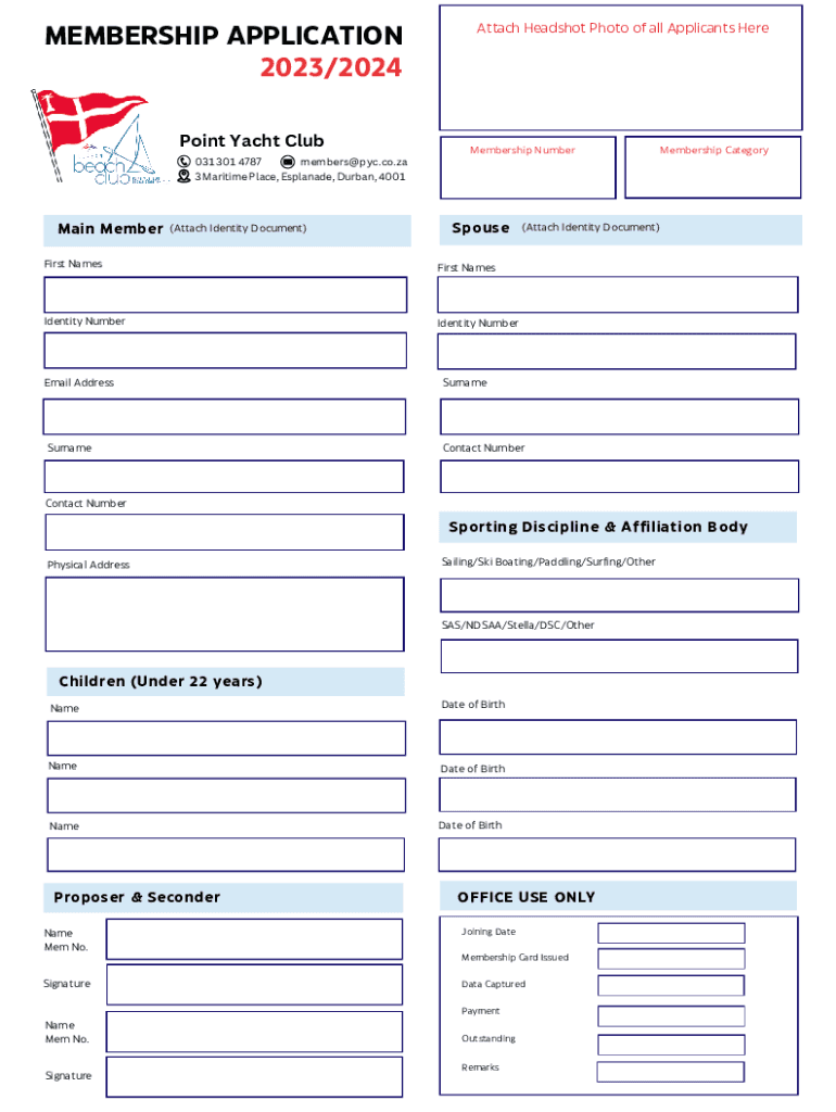 3 Maritime Place, Esplanade, Durban, 4001Main Member(Attach Identity Document)Attach Headshot Photo of all Applicants