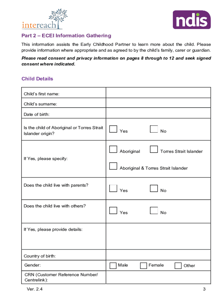 Get the free ECEI-Information-Form-for-Early-Childhood-Partners- ...