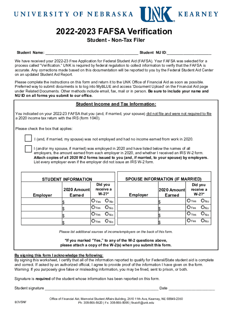 20222023 FAFSA Verification Student Syntax Filer Student Names: ___ Student NU ID:___ We have received your 202223 Free Application for Federal Student Aid (FAFSA). Your FAFSA was selected for a process
