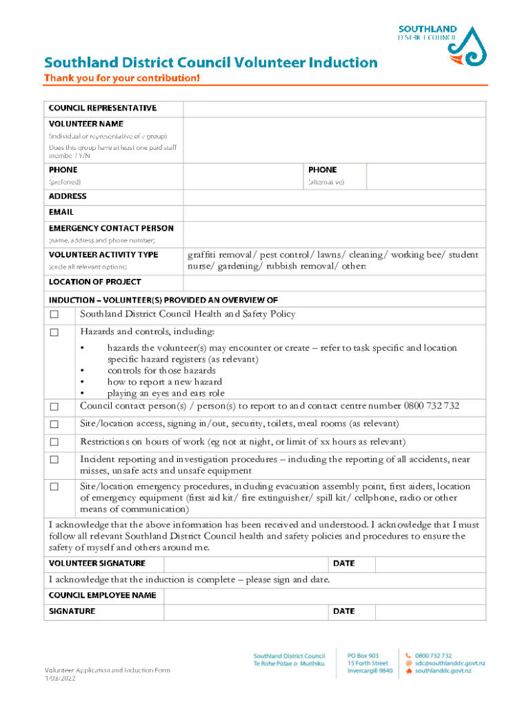 Fill out your volunteer application and induction online with pdfFiller!