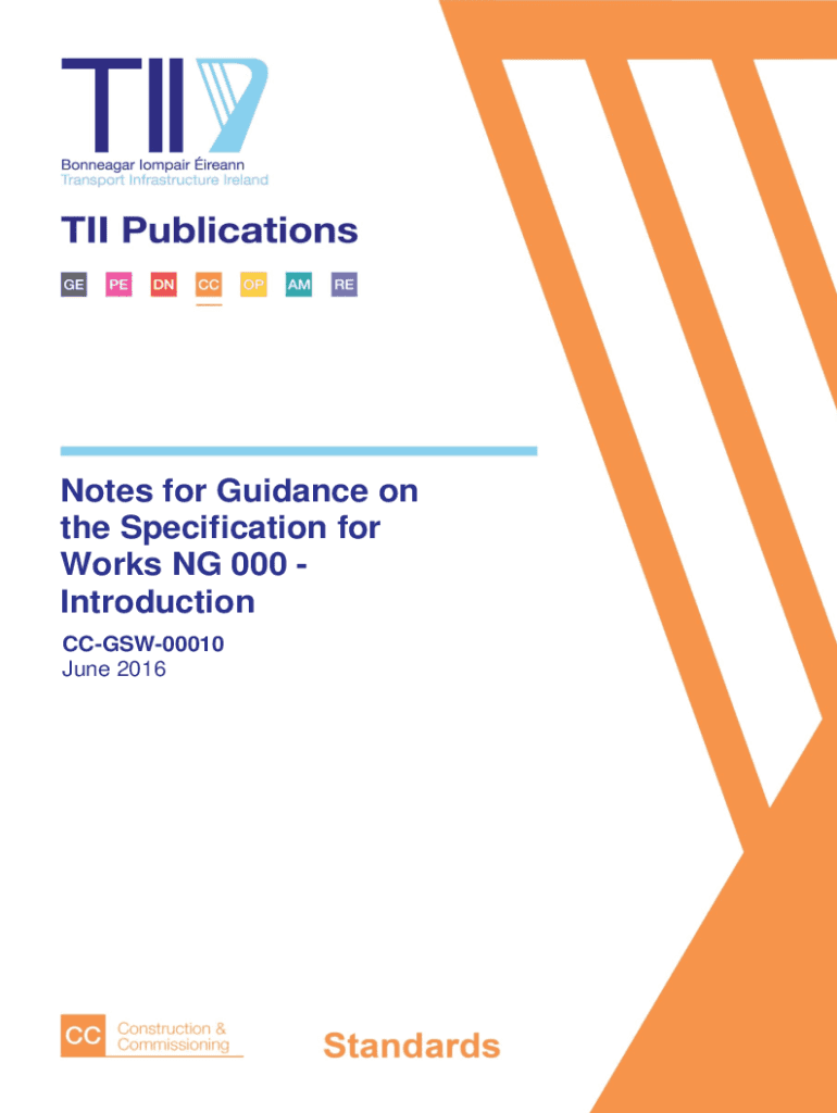 Notes for Guidance on the Specification for Works NG 000 Introduction CCGSW00010 June 2016TII Publications Notes for Guidance on the Specification for Works NG 000 IntroductionCCGSW00010 June 2016About
