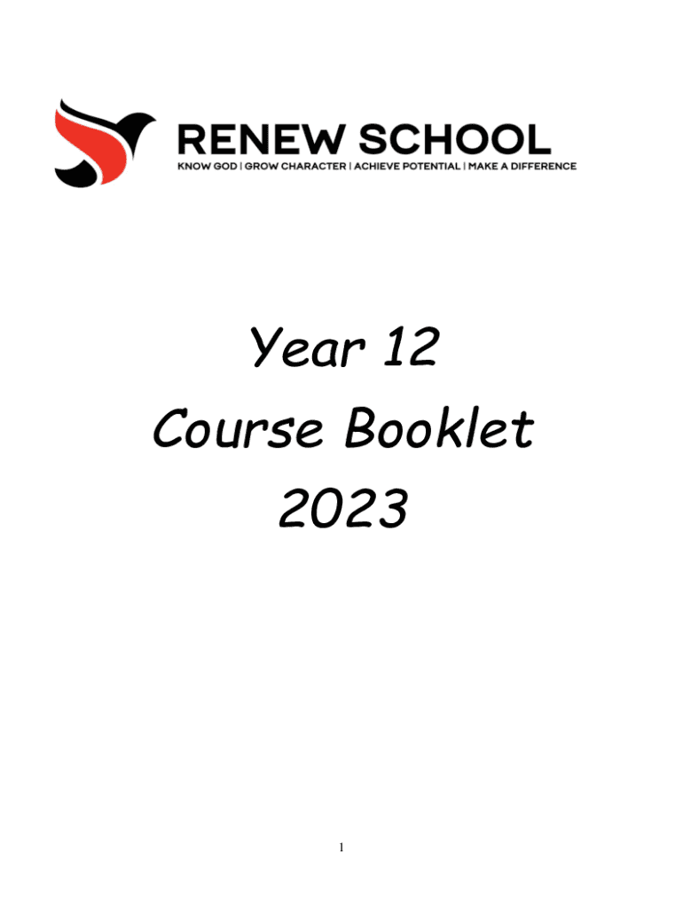 Year 12 Course Booklet 20231Introduction Dear Parents and Students This booklet is to assist you to make subject choices for 2023. It is important to read the introductory sections before filling