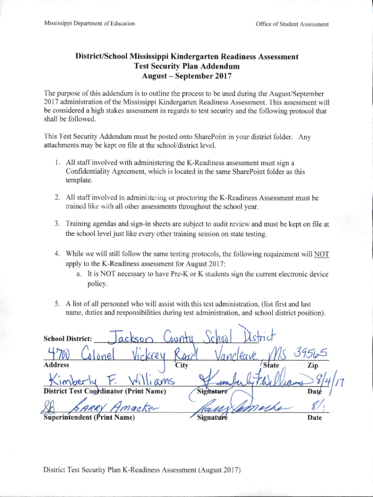 Get the free Test SecurityThe Mississippi Department of Education