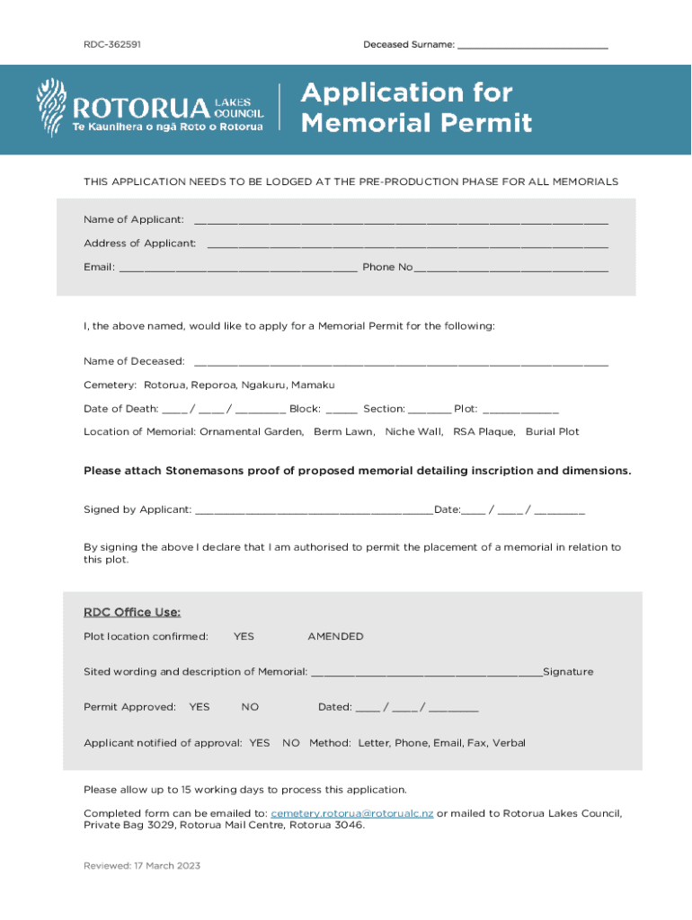 THIS APPLICATION NEEDS TO BE LODGED AT THE PREPRODUCTION PHASE FOR ALL MEMORIALSName of Applicant:___Address of Applicant:___Email: ___ Phone No ___I, the above named, would like to apply for a Memorial