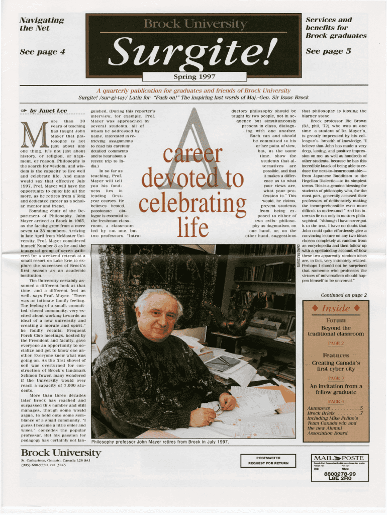 Navigating the Services and benefits for Brock graduates page 4See page 5A quarterly publication for graduates and friends of Brock University Survive! /SUR city/ Latin for \” Push on! \” The