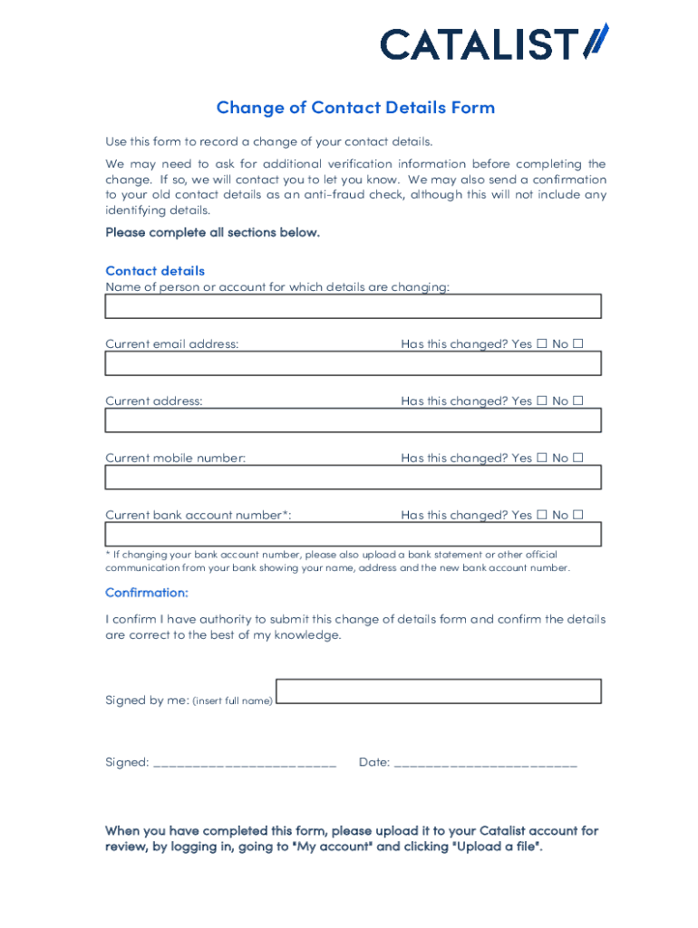 Get the free Change of Contact Details Form - Catalist