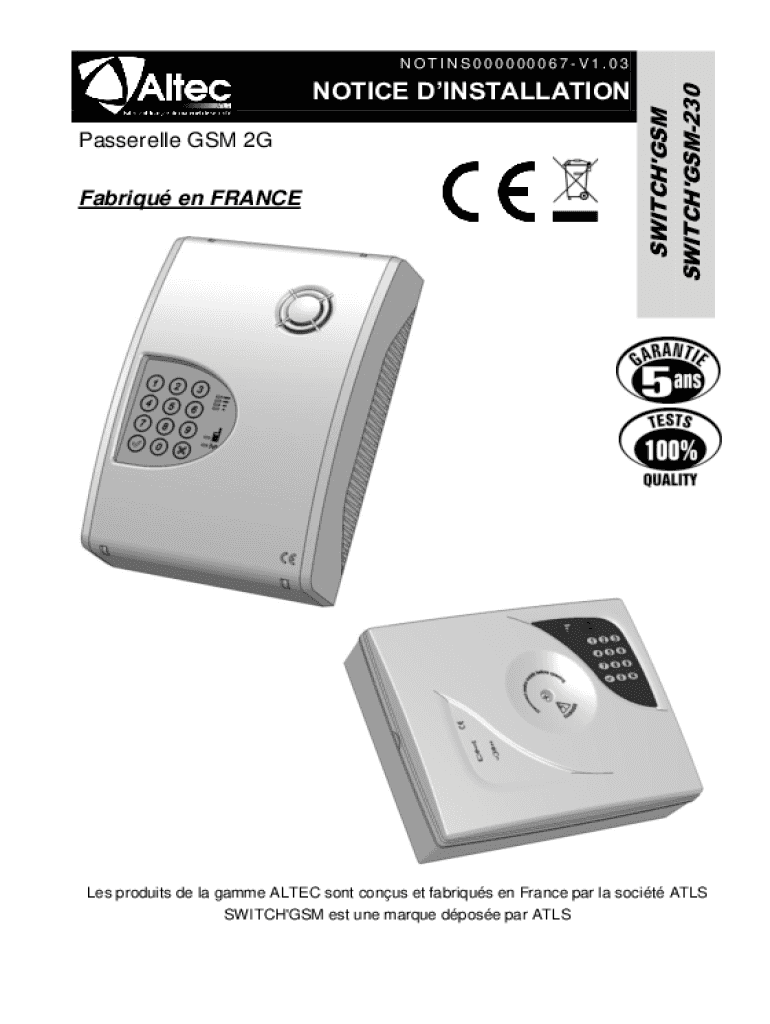 SWITCH\'GSM230NOTINS000000067V1.03Les products DE la game ALTER sent bonus ET fabrics en France par la so cit ATLAS