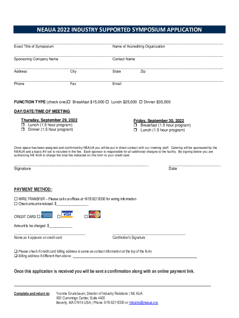 Get the free neaua 2022 industry supported symposium application - meeting neaua