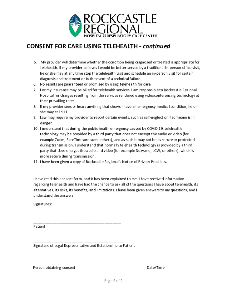 CONSENT FOR CARE USING TELEHEALTH Physicians and other medical personnel such as physician assistants (PA), Advance Practice Registered Nurses (APRN), Registered Nurses, SpeechLanguage Pathologists,