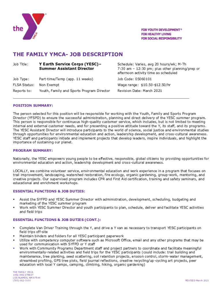 Get, Create, Make and Sign ymca site director school