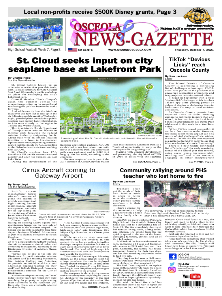 Local nonprofits receive $500K Disney grants, Page 3 Informing readers. Helping builds a stronger community. High School Football, Week 7, Page 8.50 CENTS WWW.AROUNDOSCEOLA. Coast. Cloud seeks input