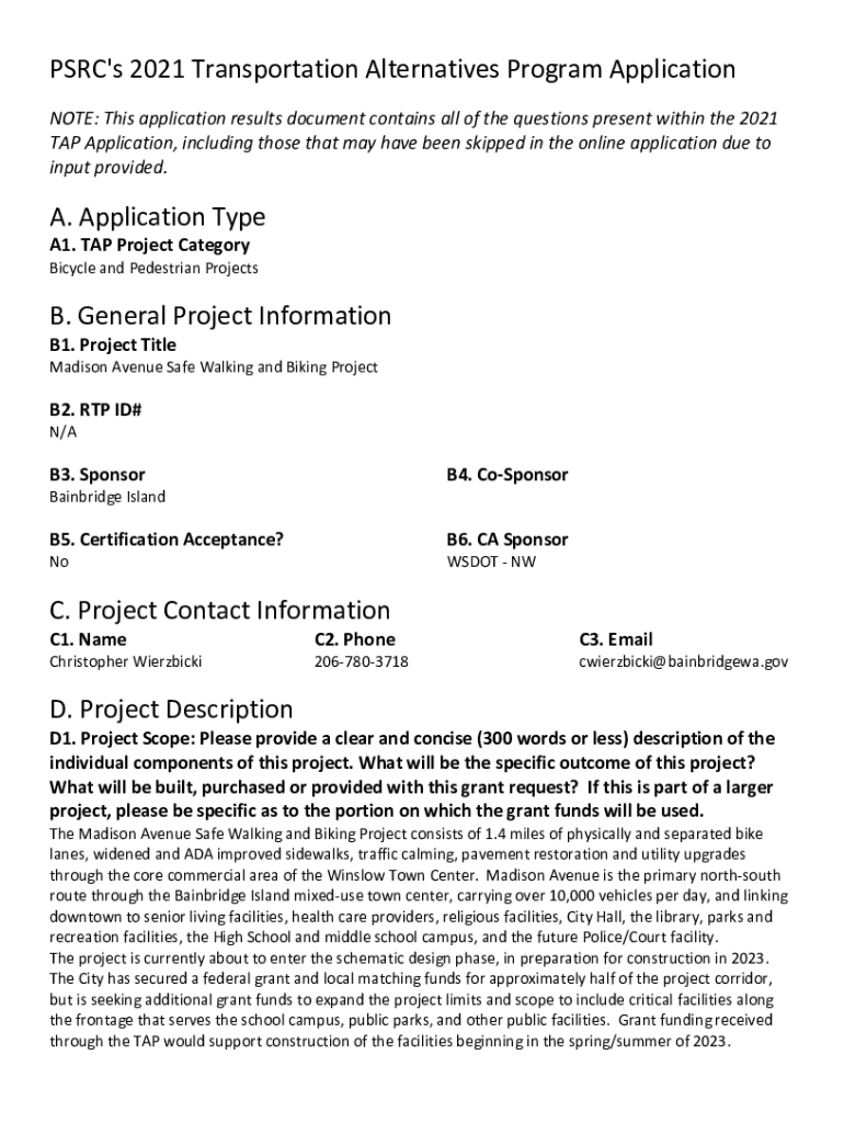 PRC\'s 2021 Transportation Alternatives Program Application NOTE: This application results document contains all the questions present within the 2021 TAP Application, including those that may have