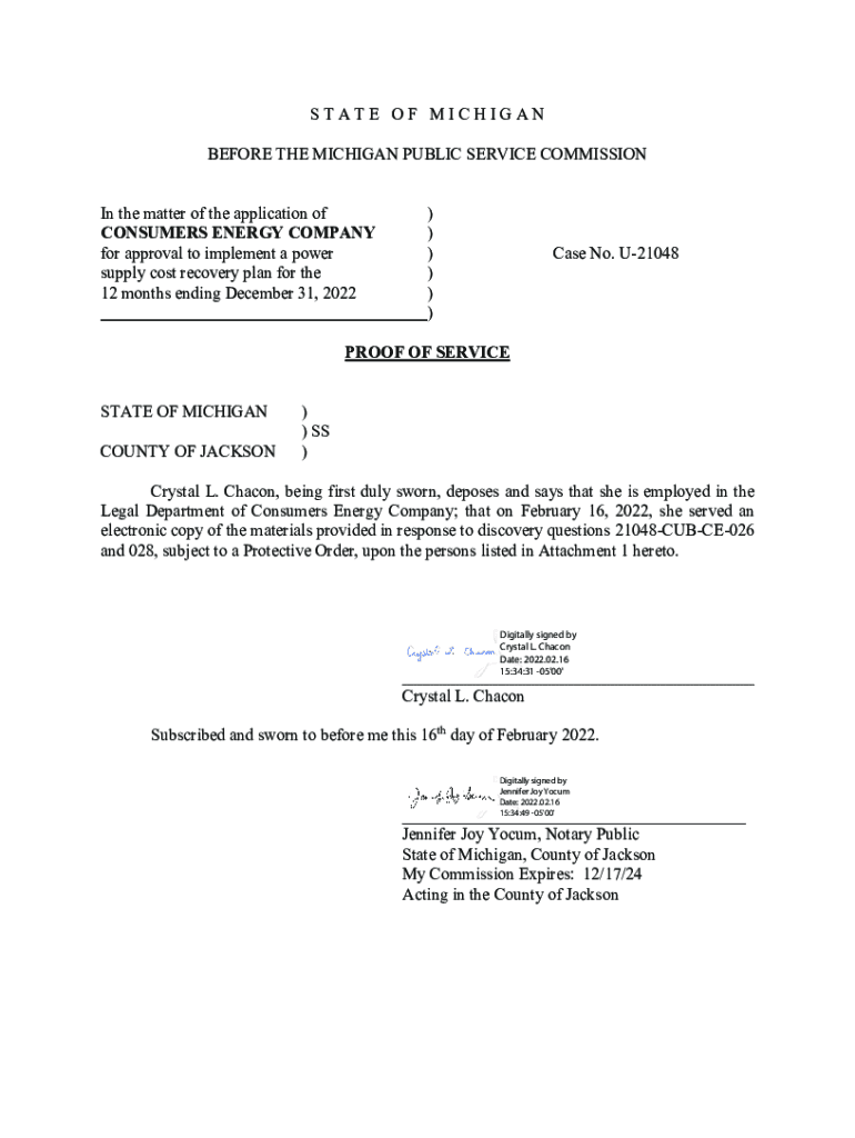 General Offices: One Energy Plaza Jackson, MI 49201February 16, 2022 Via Electronic Mail×Washington Office: 1730 Rhode Island Ave. N.W. Suite 1007 Washington, DC 20036Tel: Fax:Tel:(202) 7783340Fax:(202)