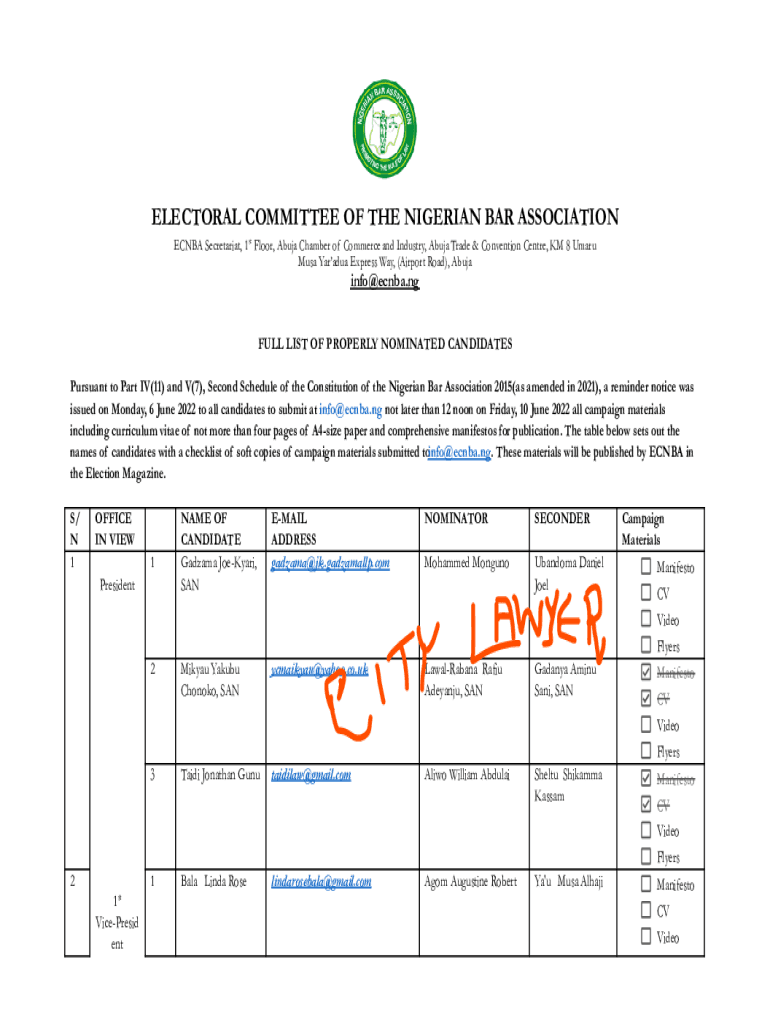 ELECTORAL COMMITTEE OF THE NIGERIAN BAR ASSOCIATION EC NBA Secretariat, 1st Floor, Abuja Chamber of Commerce and Industry, Abuja Trade & Convention Center, KM 8 Amaru Must Canada Express Way, (Airport