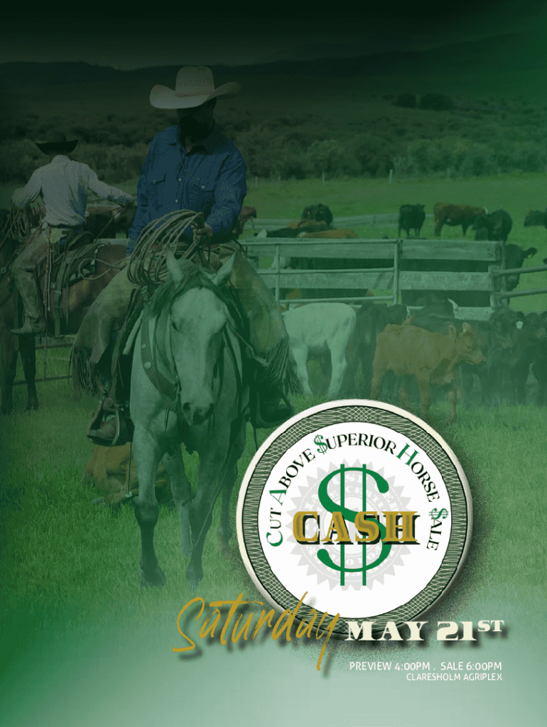 Saturday, May 21st PREVIEW 4:00PM. SALE 6:00PM CLARESHOLM AGRIPLEXFridayMay 20th$2500 Added Cash Barrel Race $100 2D OPEN (FULL SECOND SPLIT) $50 FUTURITY DEPOT $30 YOUTH. $5 PEE WEE $5 TIME ONLY