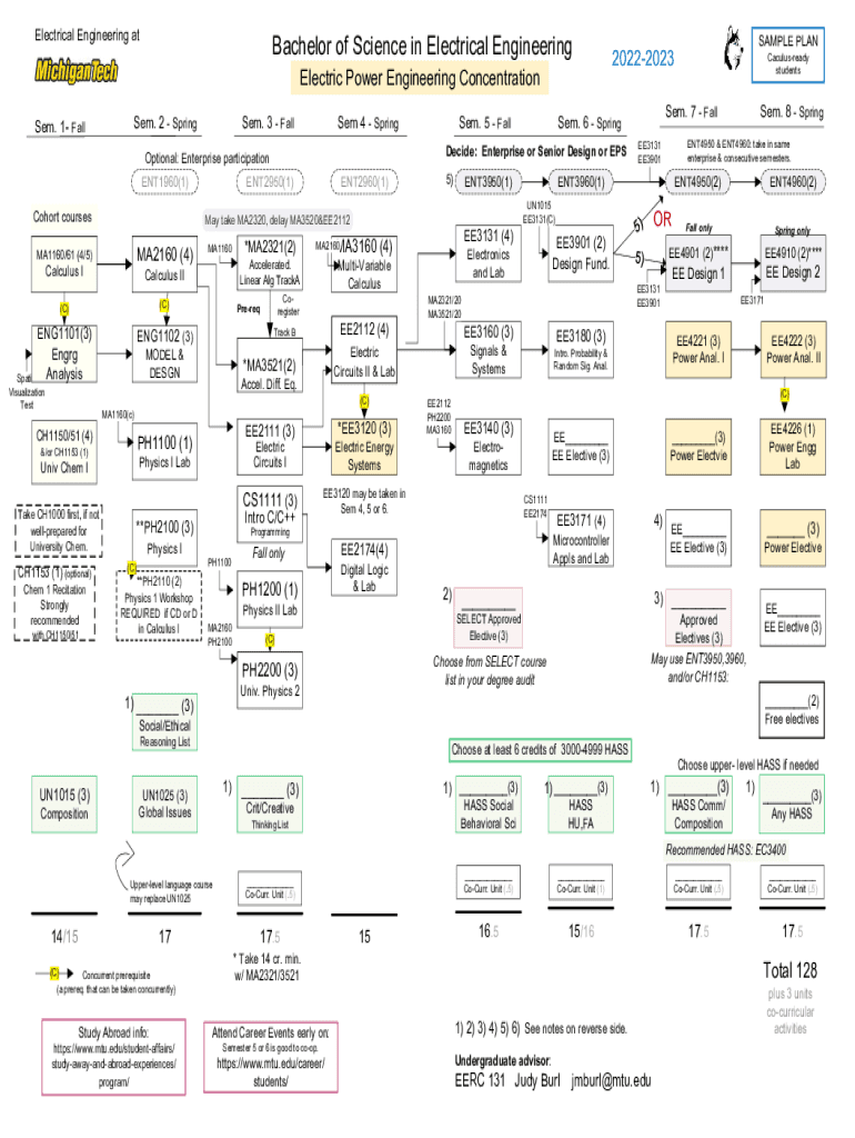 Electric Power Engineering Concentrations em. 1 Falls em. 2 Springs em. 3 Falls em 4 SpringCohort coursesENT2950(1)MA2160 (4)Calculus