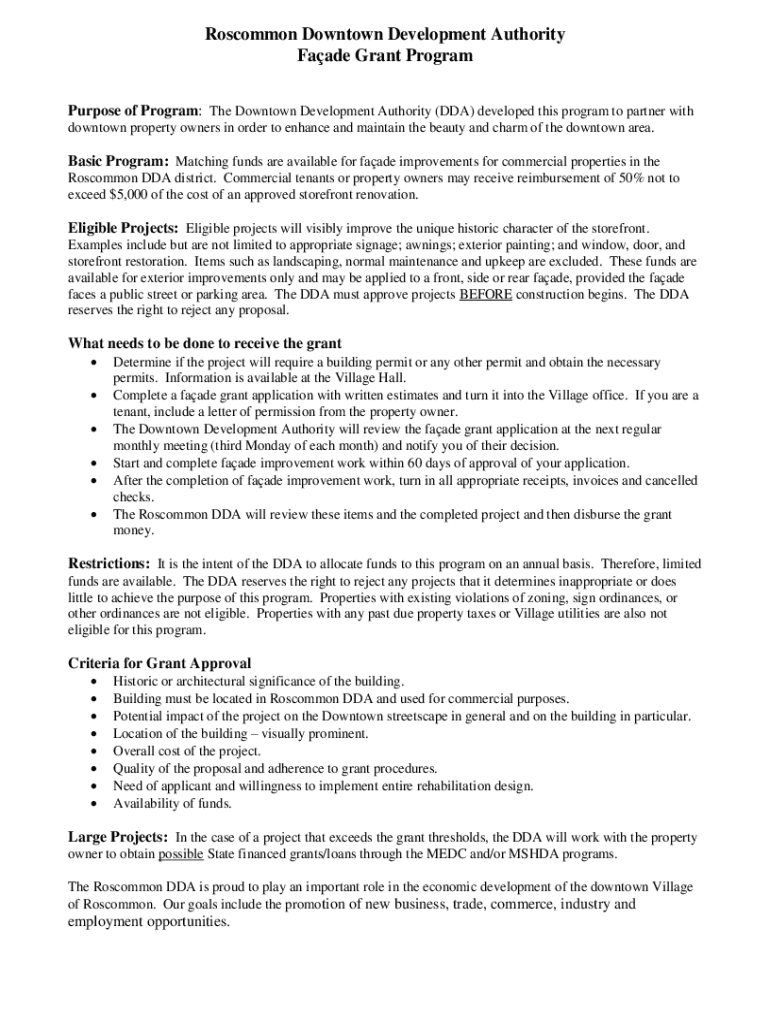 Common Downtown Development Authority Facade Grant Program Purpose of Program: The Downtown Development Authority (DDA) developed this program to partner with downtown property owners in order to