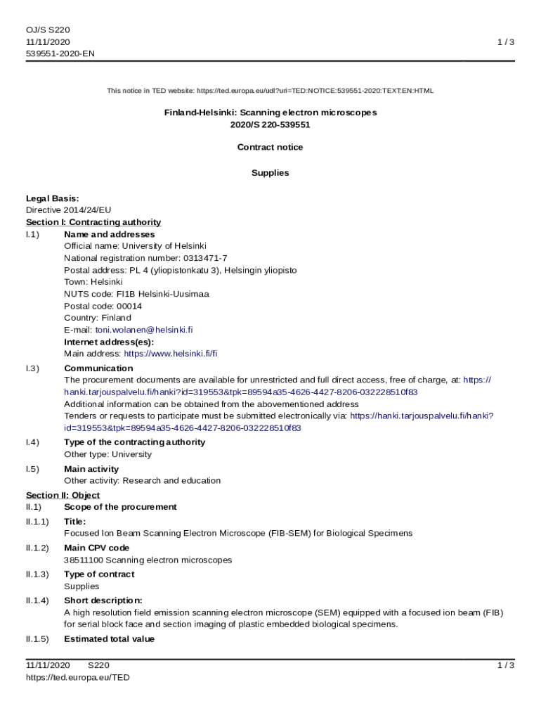 5395512020EN1/3This notice in TED website: https://ted.europa.eu/udl?uriTED:NOTICE:5395512020:TEXT:EN:HTMLFinlandHelsinki: Scanning electron microscopes