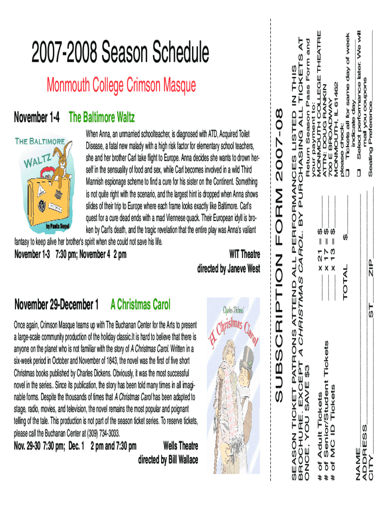 November 29December 1WIT Theater directed by Jan eve West Christmas Caroline again, Crimson Masque teams up with The Buchanan Center for the Arts to present a large scale community production of the