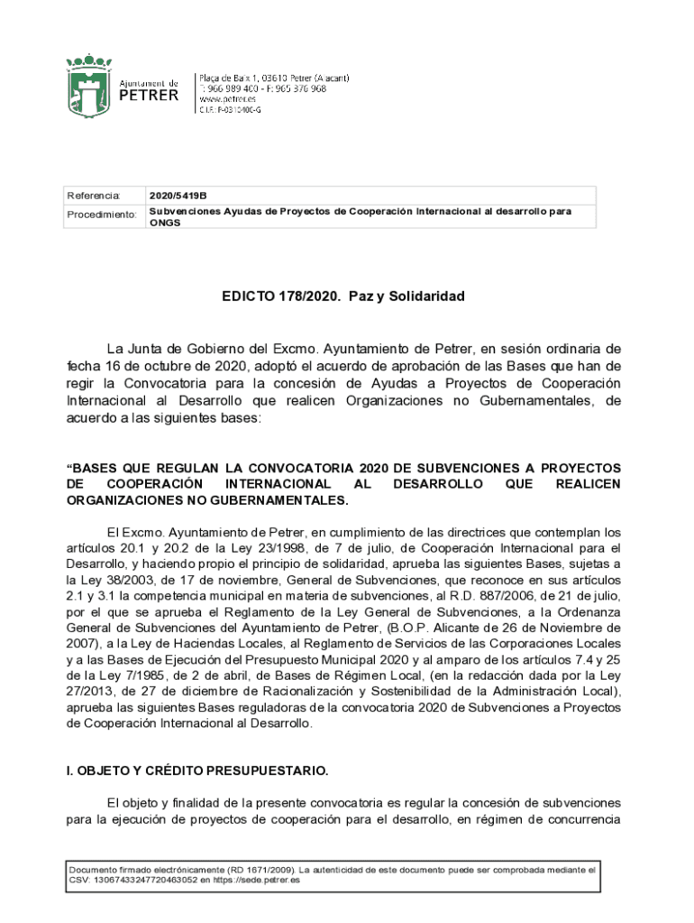Reference:2020/5419BProcedimiento:Subventions Judas de Proyectos de Cooperacin International all desarrollo para