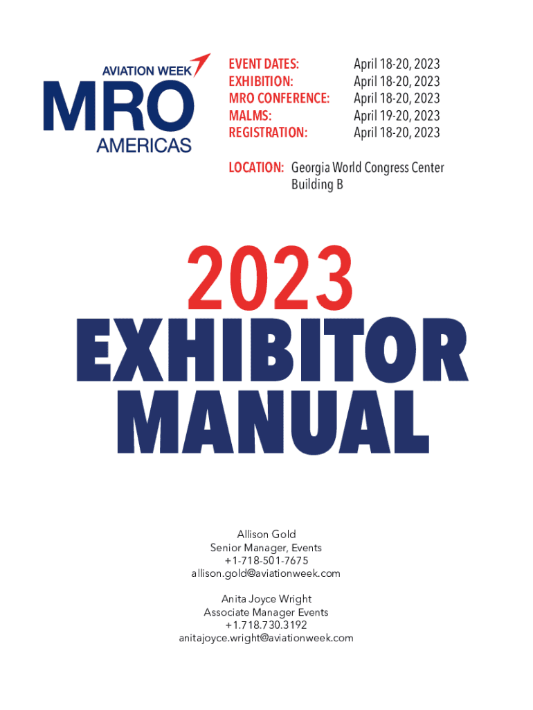 EVENT DATES:EXHIBITION:MRO CONFERENCE:MALES:REGISTRATION:April 1820, 2023 April 1820, 2023 April 1820, 2023 April 1920, 2023 April 1820, 2023LOCATION:Georgia World Congress CenterBuilding B2023 EXHIBITOR