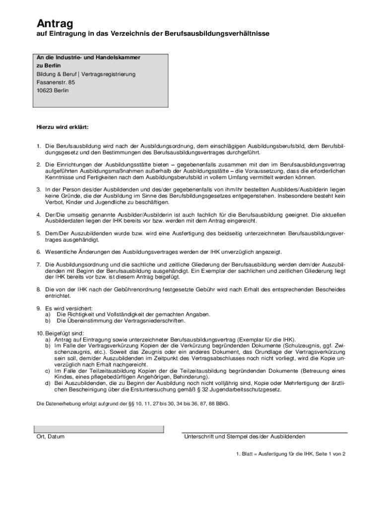 AUF Intriguing in was Verzeichnis her BerufsausbildungsverhltnisseAn die Industries UND Handelskammer