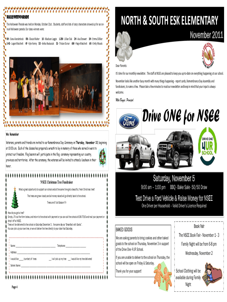 HALLOWEEN PARADE The Halloween Parade was held on Monday, October 31st. Students, staff and lots of crazy characters showed up for our annual Halloween parade. Our class winners were:November 2011KN