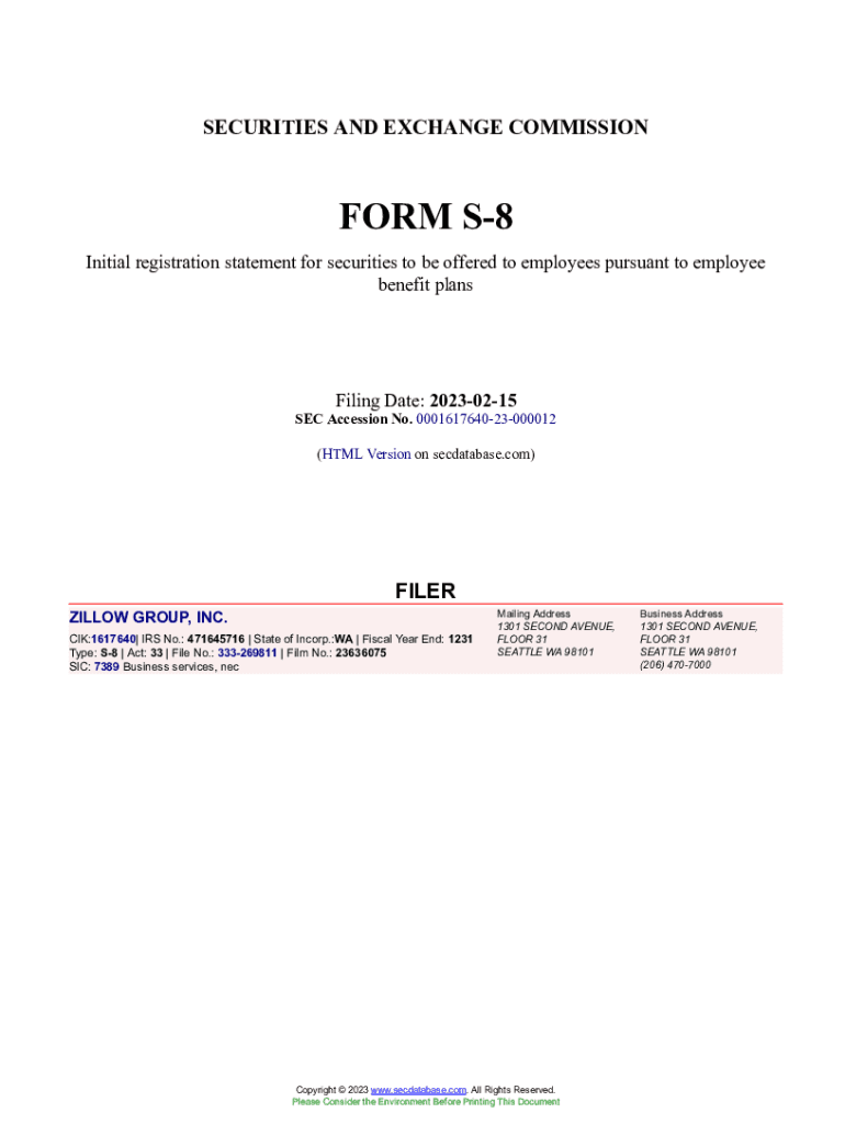 SECURITIES AND EXCHANGE COMMISSIONER S8 Initial registration statement for securities to be offered to employees pursuant to employee benefit transfixing Date: 20230215SEC Accession No. 000161764023000012