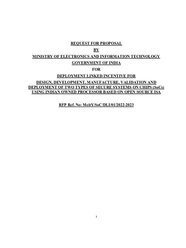REQUEST FOR PROPOSAL BY MINISTRY OF ELECTRONICS AND INFORMATION TECHNOLOGY GOVERNMENT OF INDIA FOR DEPLOYMENT LINKED INCENTIVE FOR DESIGN, DEVELOPMENT, MANUFACTURE, VALIDATION AND DEPLOYMENT OF TWO