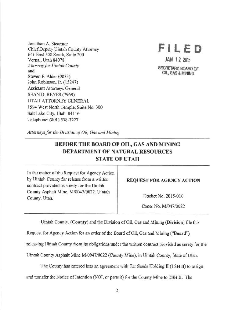 Get the free Notice of Hearing - Utah Division of Oil - fs ogm utah