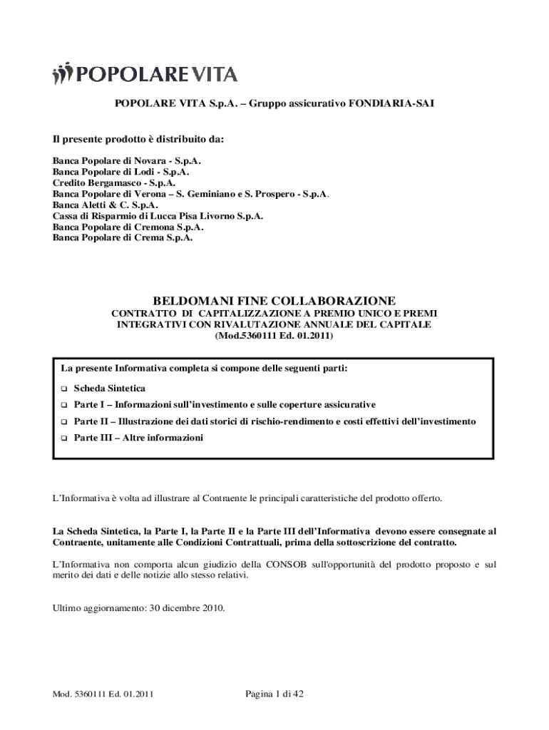 POPULAR VITA S.p.A. Krupp assicurativo FONDIARIASAIIl present product distribution the: