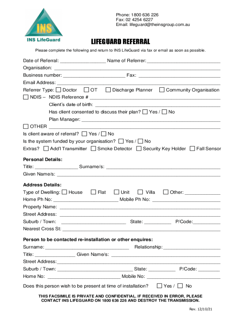 Email: lifeguard@theinsgroup.com.auLIFEGUARD REFERRAL