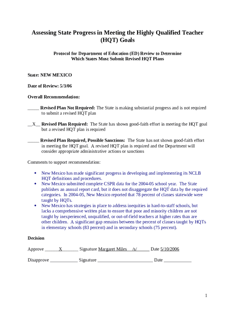 Frequently asked questions about Revised Highly Qualified Teachers State Plan (PDF) template