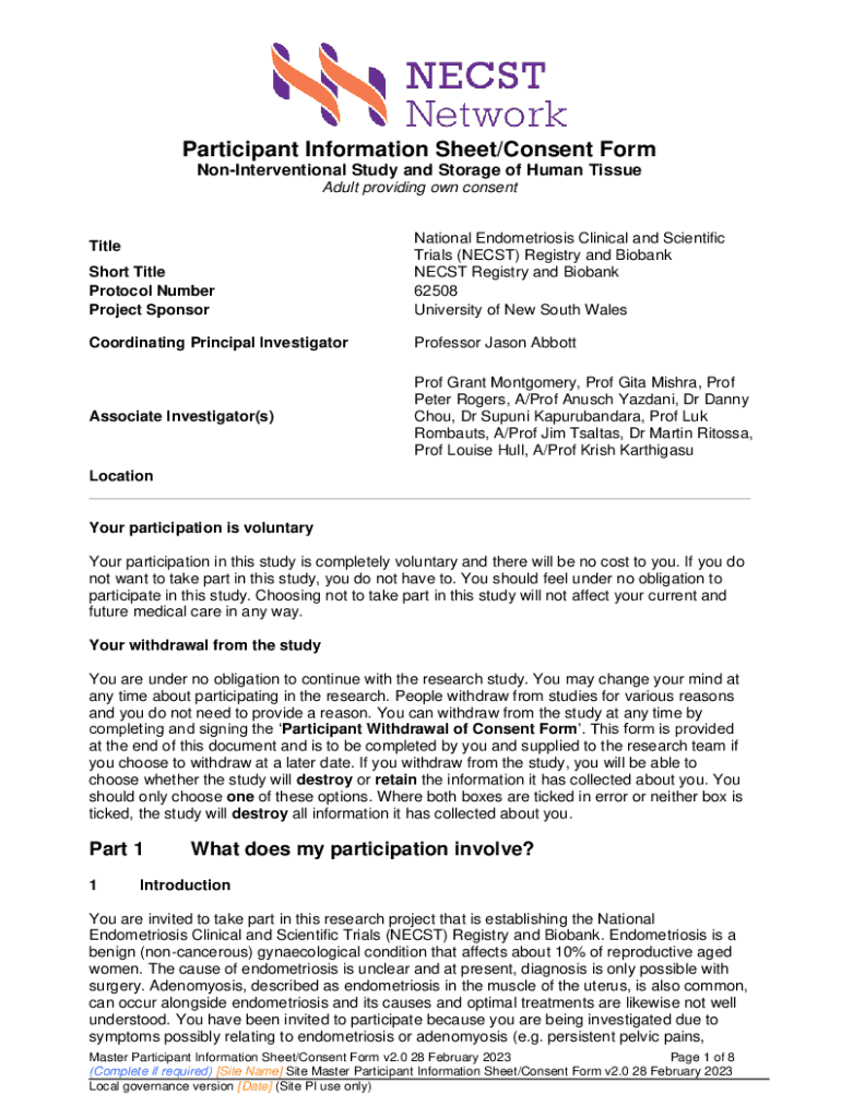 Get the free Non-Interventional Study and Storage of Human Tissue