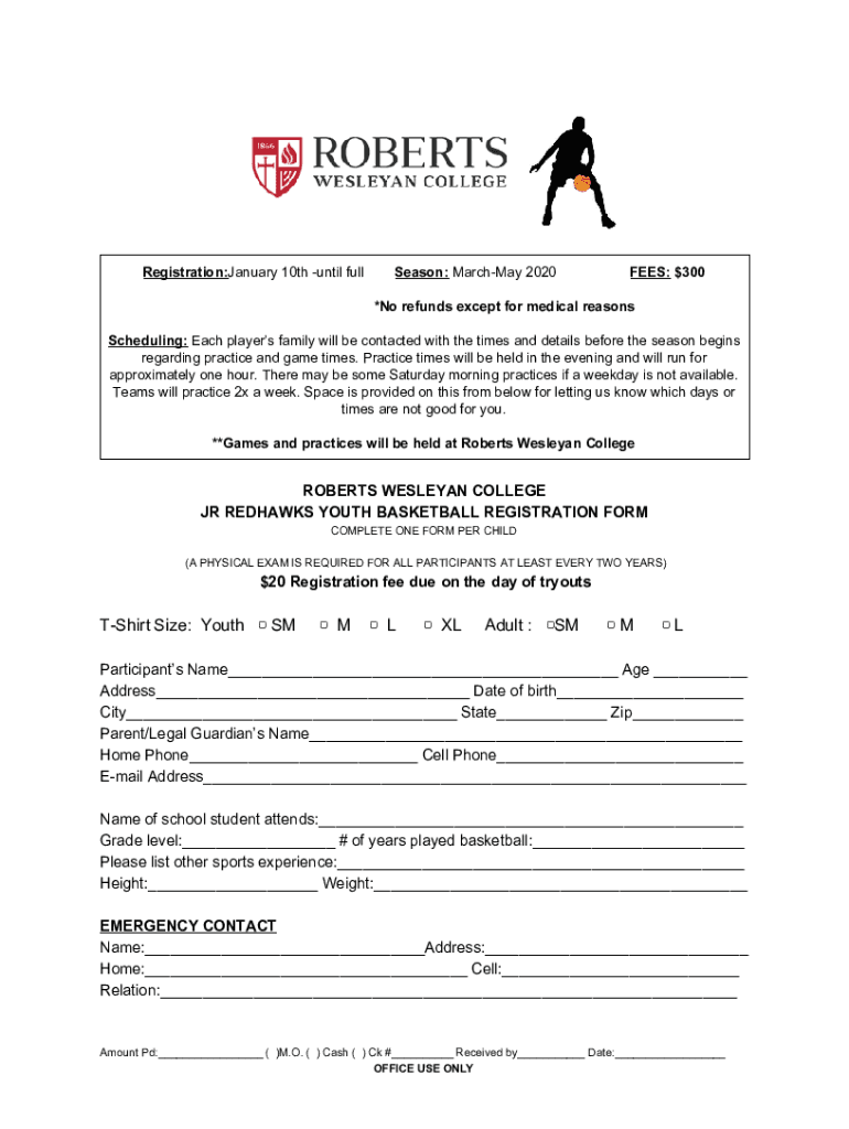 Registration:January 10th until Fullerton: March May 2020FEES: $300×No refunds except for medical reasons Scheduling: Each players' family will be contacted with the times and details before the
