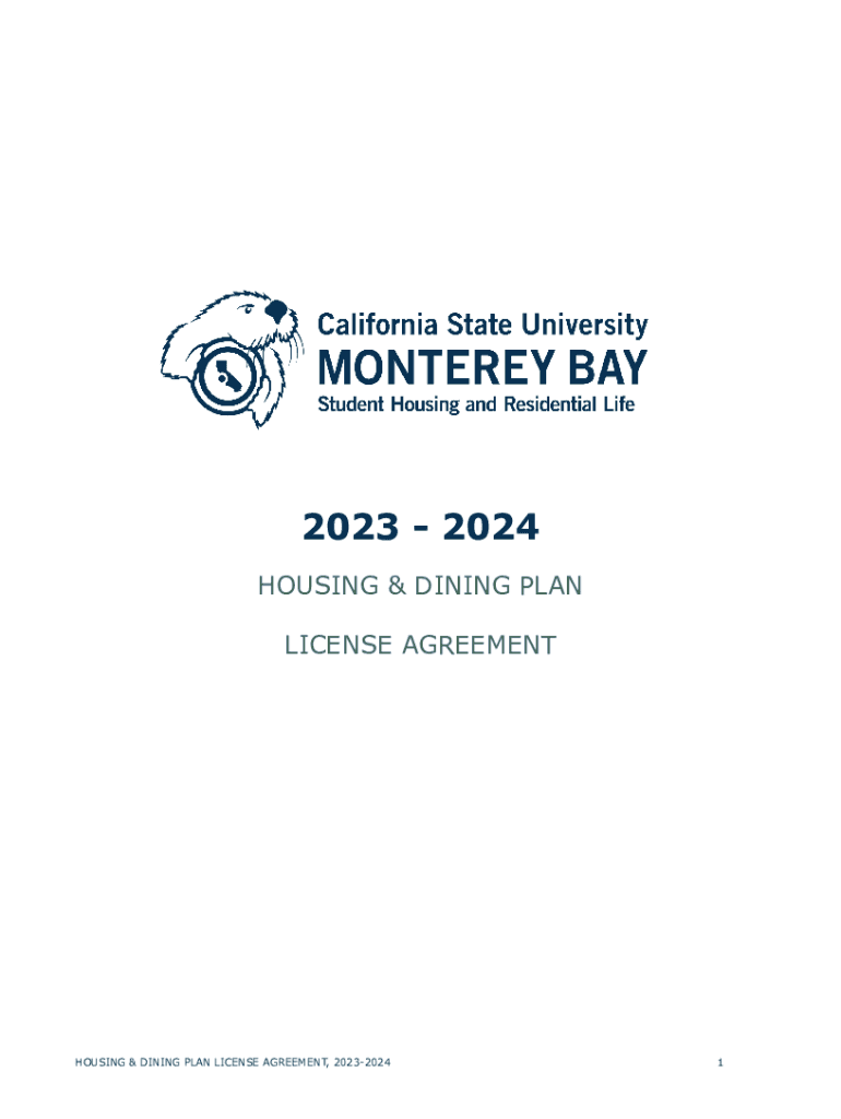 2023 2024 HOUSING & DINING PLAN LICENSE AGREEMENTHOUSING & DINING PLAN LICENSE AGREEMENT, 202320241TABLE OF CONTENTS Key sections of the License are listed below. Particular items in each section
