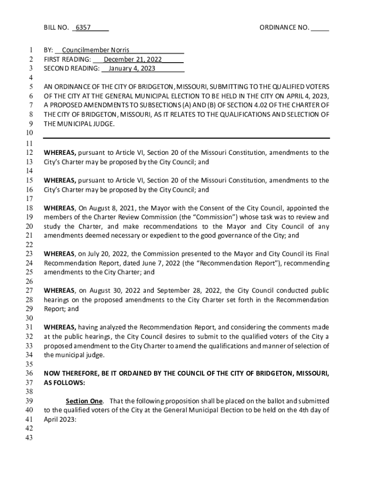 Fill out your bill no 6357 ordinance online with pdfFiller!