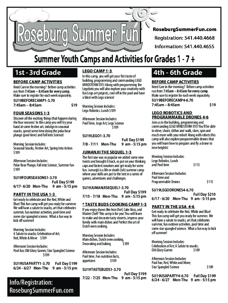 Summer Youth Camps and Activities for Grades 1 7 + 1st 3rd Grade BEFORE CAMP ACTIVITIES Need Care in the morning? Before camp activities run from 7:45am 8:45am for every camp. Make sure to register