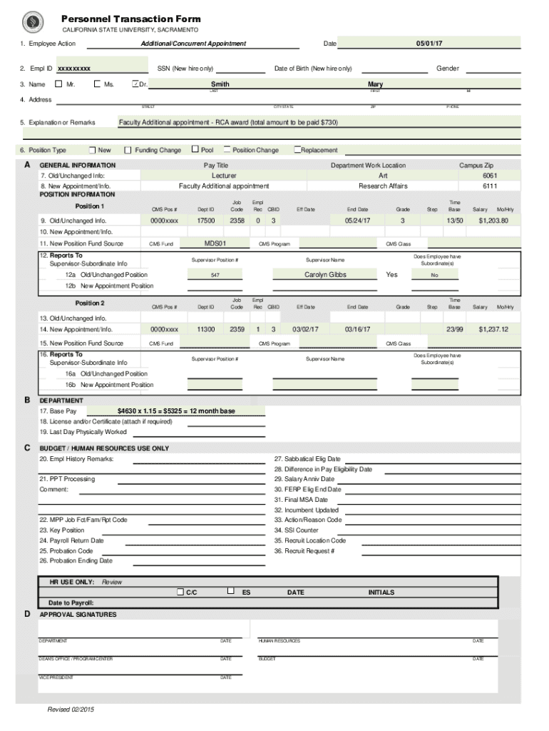 CALIFORNIA STATE UNIVERSITY, SACRAMENTO1. Employee ActionAdditional/Concurrent Appointment2. Emil ID xxxxxxxxx