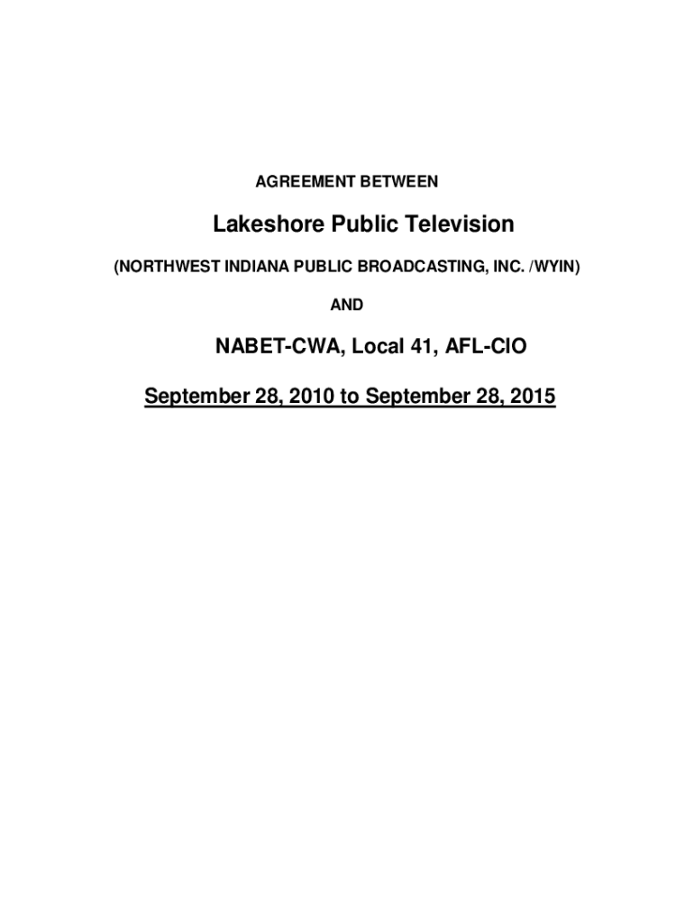 AGREEMENT BETWEENLakeshore Public Television (NORTHWEST INDIANA PUBLIC BROADCASTING, INC. /WIN) ANDNABETCWA, Local 41, AFL CIO September 28, 2010, to September 28, 2015TABLE OF CONTENTS Page 1.0 BASIC