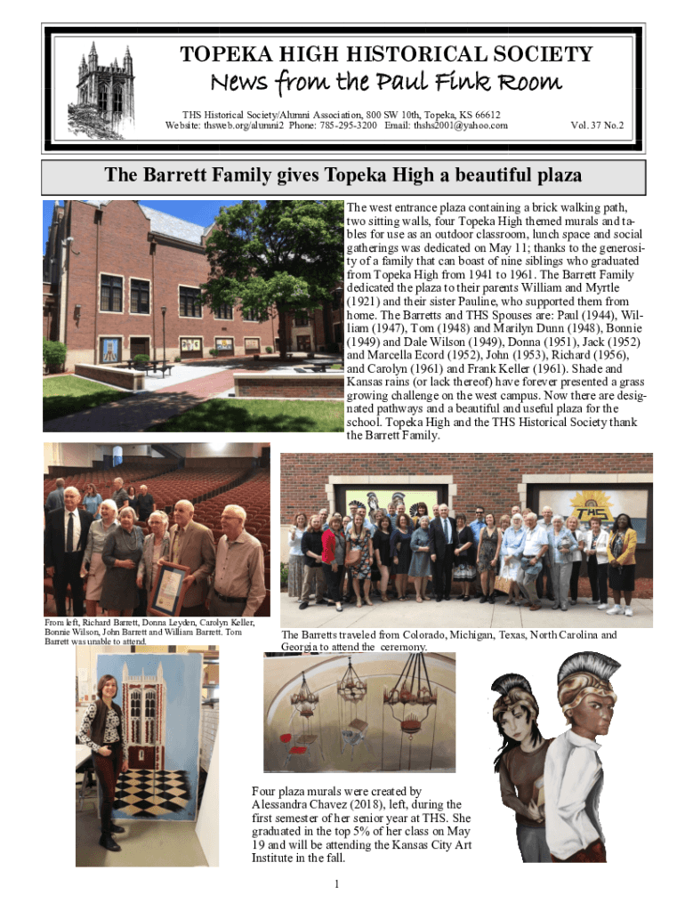 TOPEKA HIGH HISTORICAL Societies from the Paul Fink Room THS Historical Society/Alumni Association, 800 SW 10th, Topeka, KS 66612 Website: thsweb.org/alumni2 Phone: 7852953200 Email: thshs2001@yahoo.comVol.