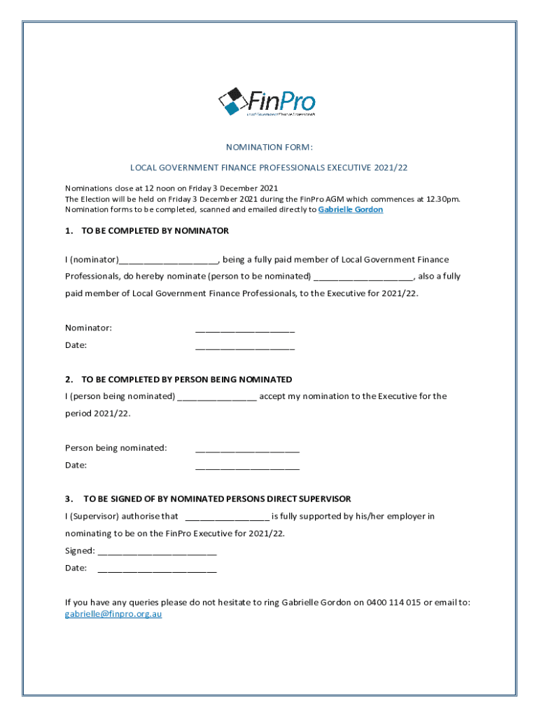Get the free NOMINATION FORM - FinPro