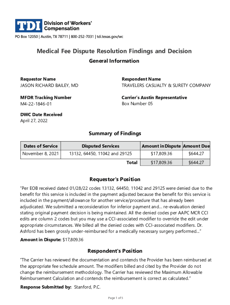 TRAVELERS CASUALTY & SURETY COMPANYMFDR Tracking Number
